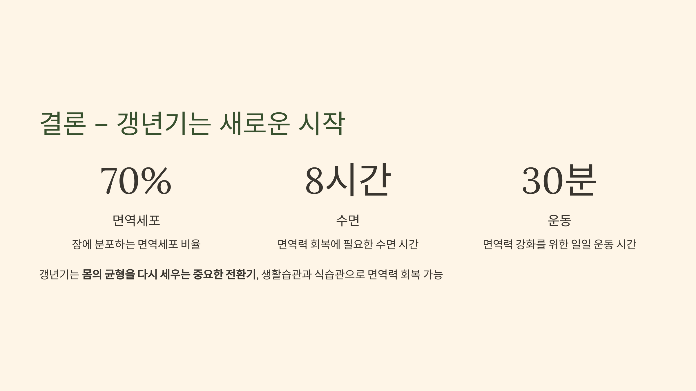 📝 결론 – 갱년기는 새로운 시작, 면역이 우선입니다