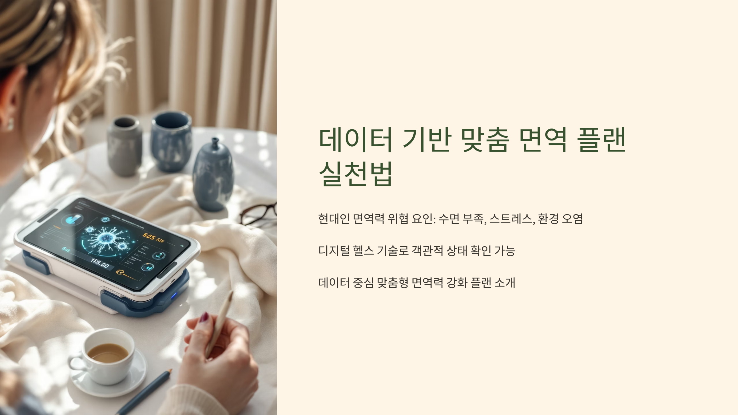 단순한 건강 정보나 일반적인 운동·식단 팁만으로는 개인의 컨디션과 필요에 최적화된 면역력 개선이 어렵습니다.