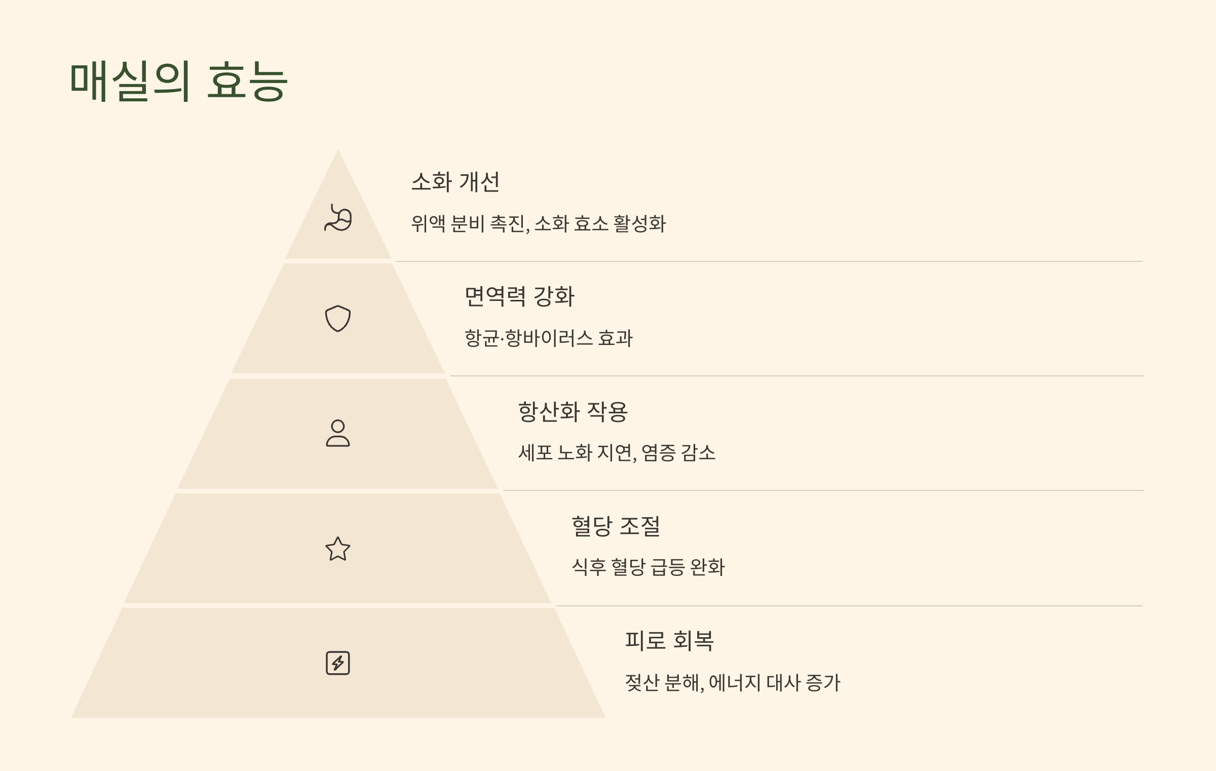 📌 매실에는 이 외에도 플라보노이드, 클로로겐산, 벤즈알데하이드 등 항산화 및 항균 작용 성분이 함유되어 있으며, 특히 청매 상태에서 그 농도가 높습니다.