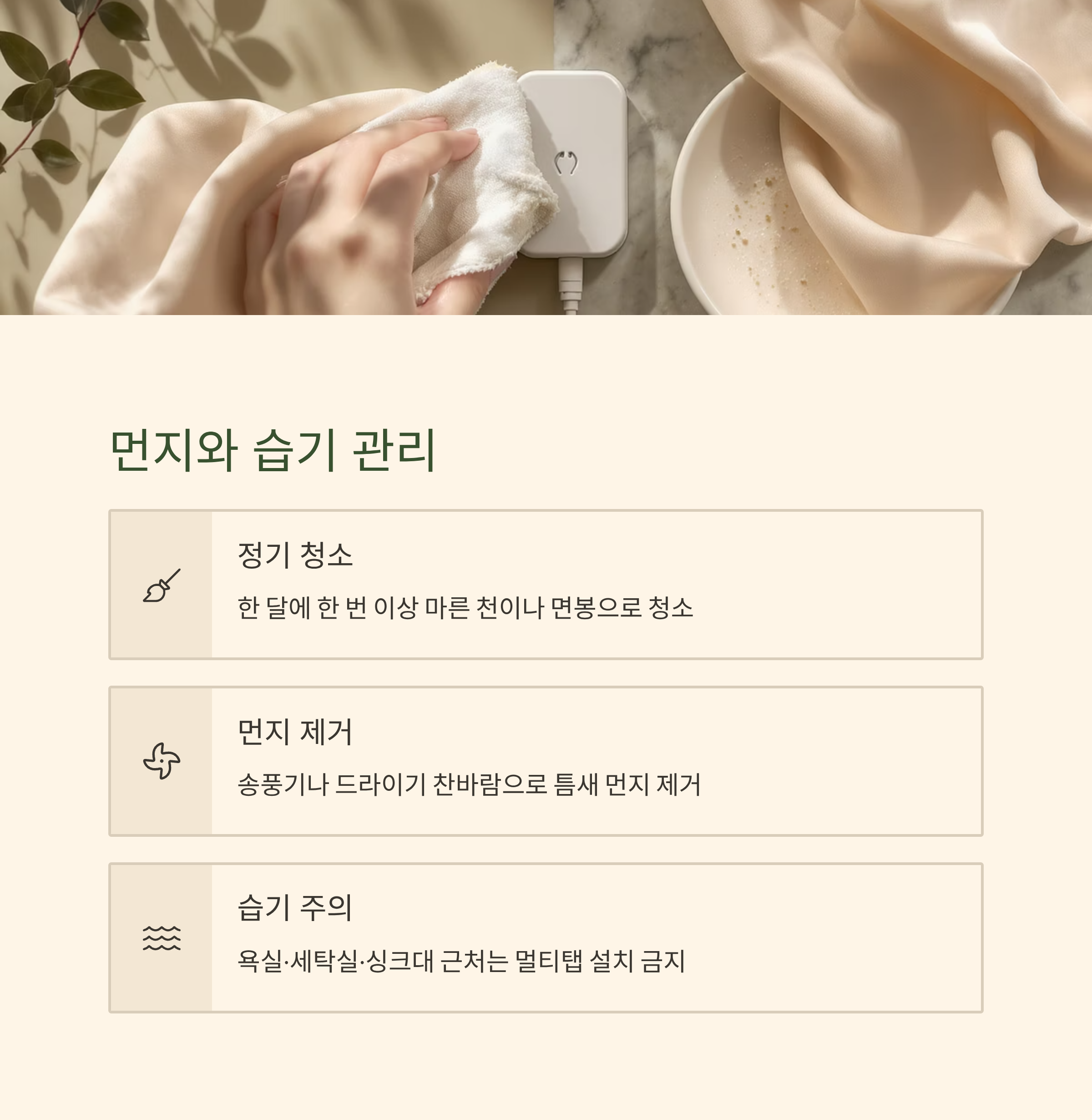 4. 먼지와 습기 관리 – 멀티탭은 ‘청결’이 생명입니다