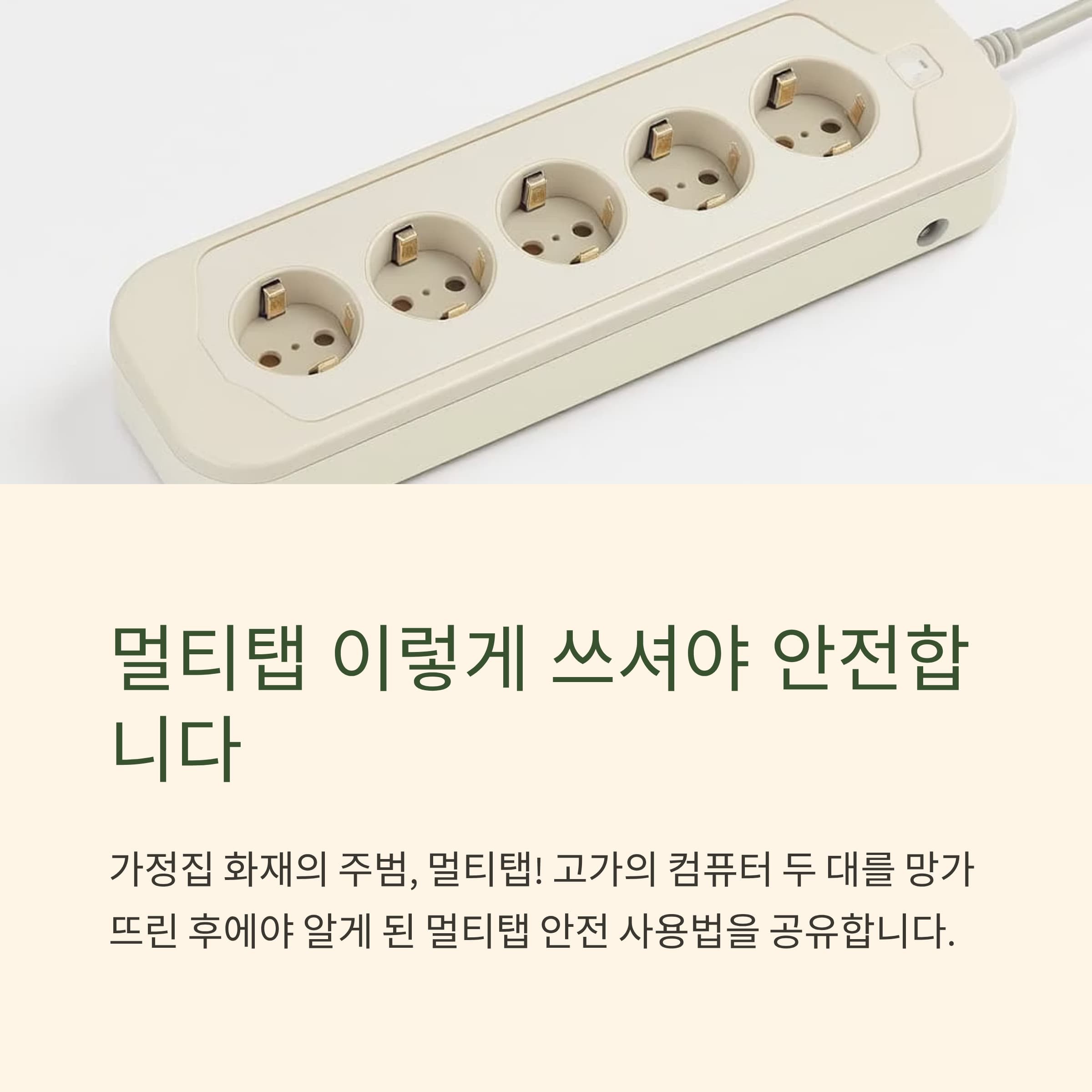 멀티탭은 단순한 전기 도구가 아니라 화재와 감전을 막아주는 안전장치입니다.