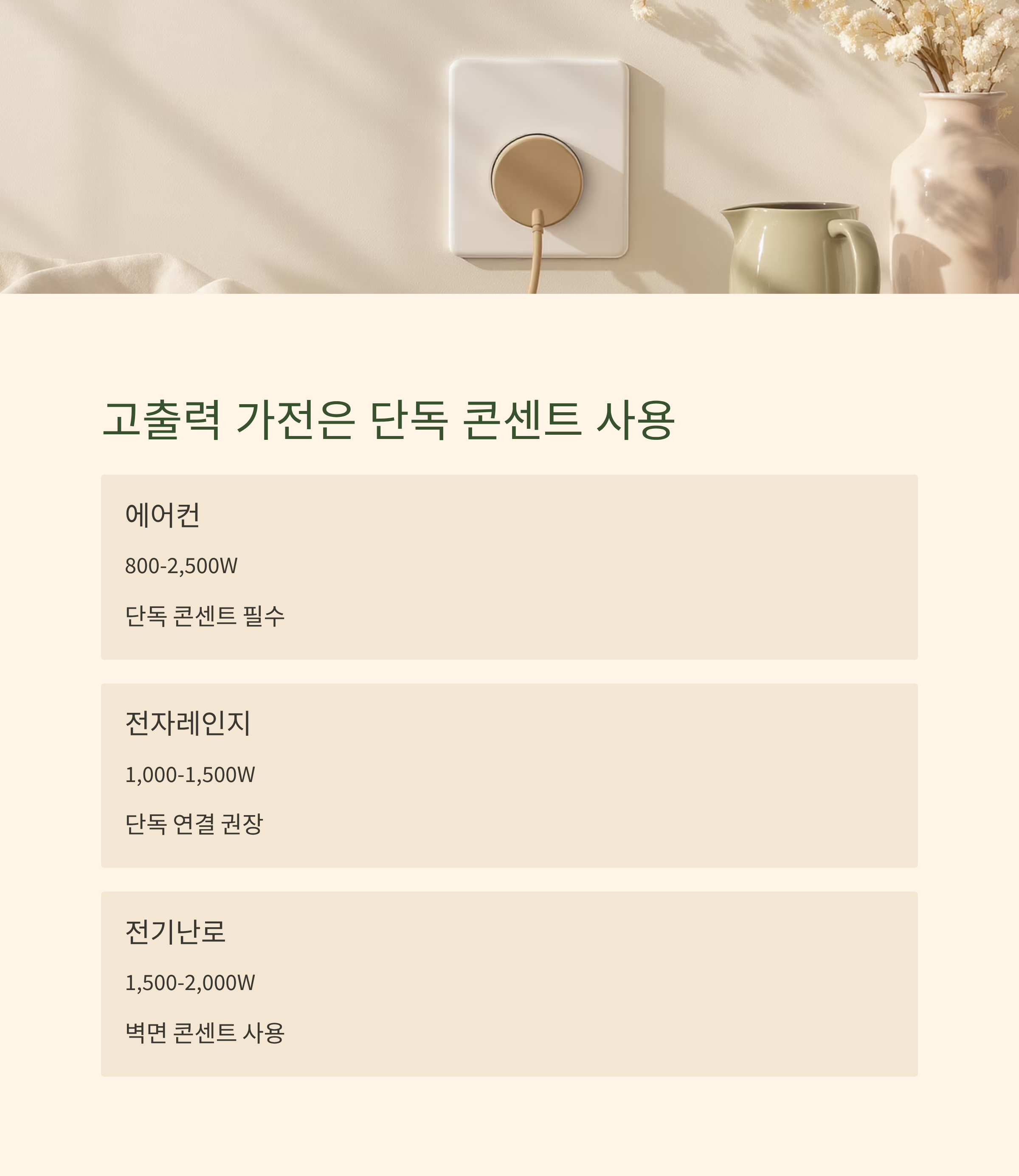 2 고출력 가전은 단독 콘센트 사용