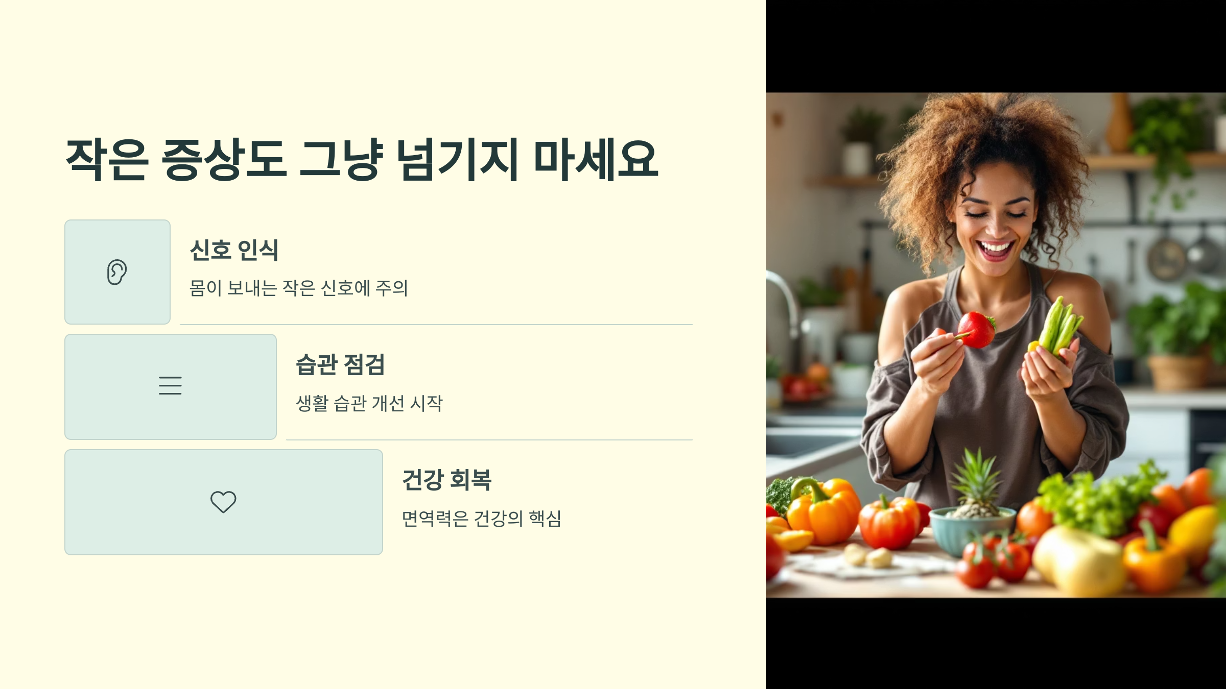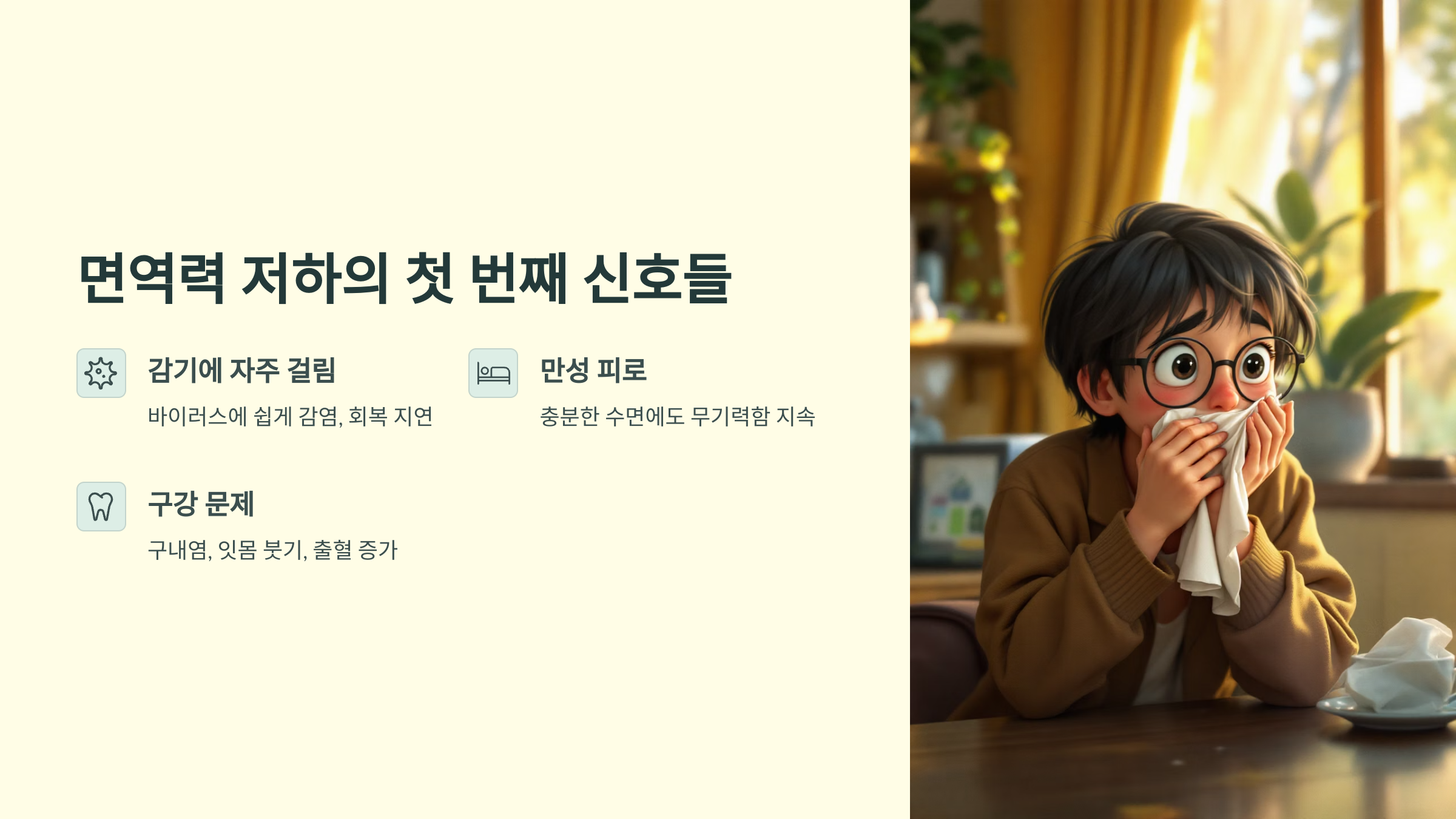 오늘은 면역력이 떨어졌을 때 나타나는 초기 증상 7가지와 함께, 이를 회복하는 방법까지 알려드릴게요.