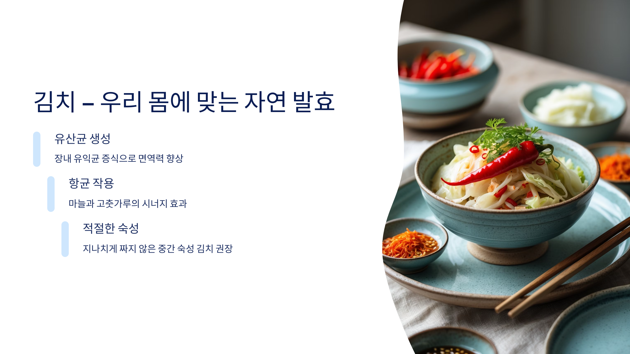 발효 과정에서 생성되는 유산균은 장내 유익균을 증식시켜 면역을 높입니다.
