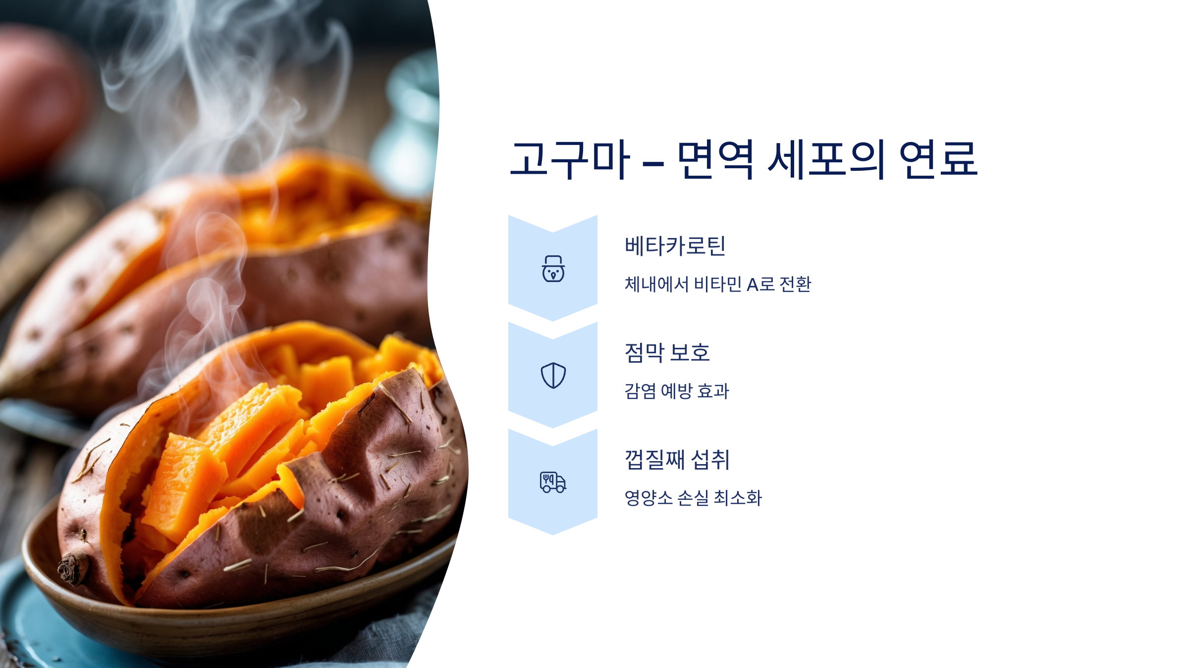 고구마는 베타카로틴의 보고로, 체내에서 비타민 A로 전환되어