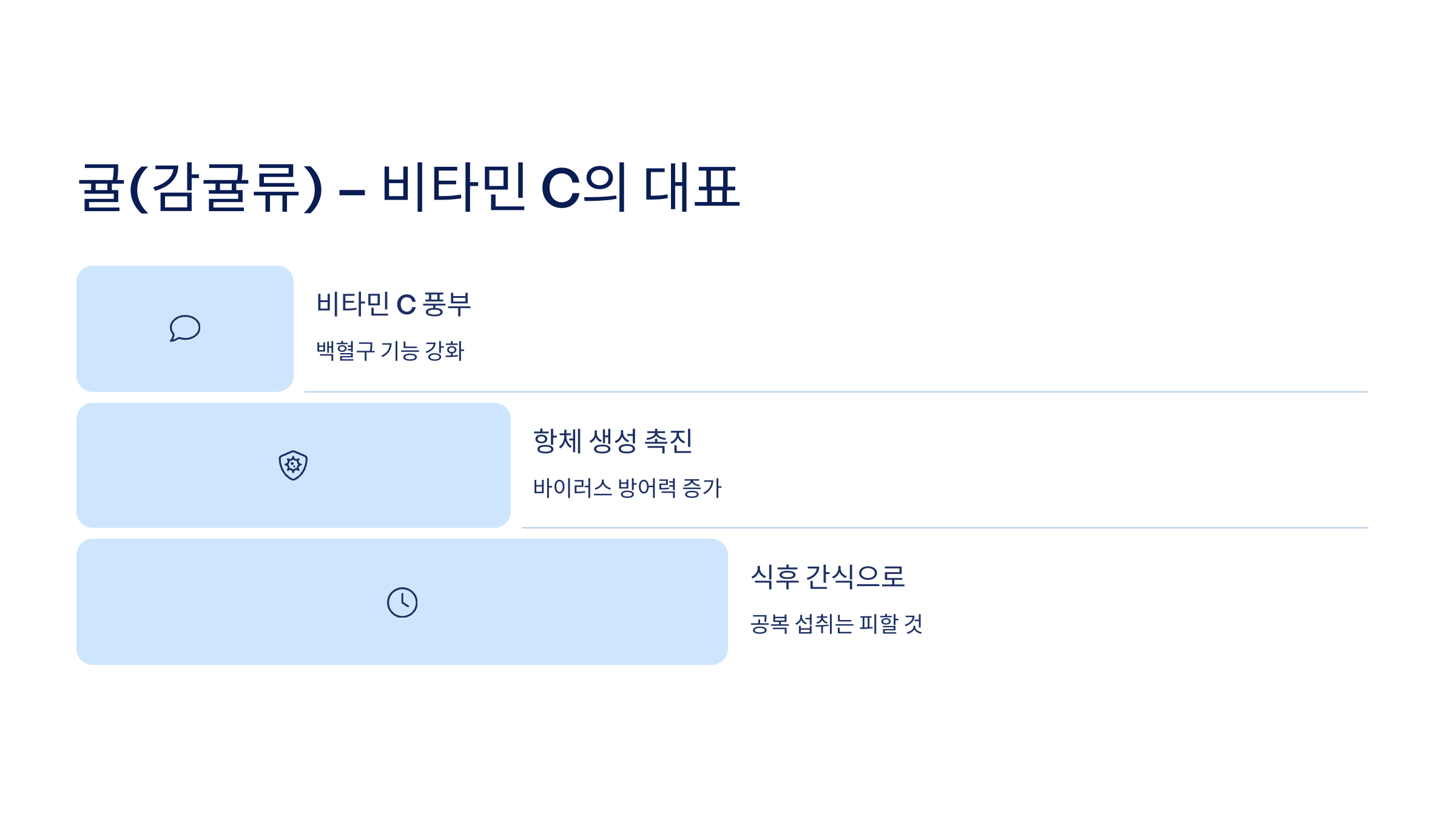 귤, 오렌지, 자몽 등은 비타민 C가 풍부해 백혈구 기능을 돕고,