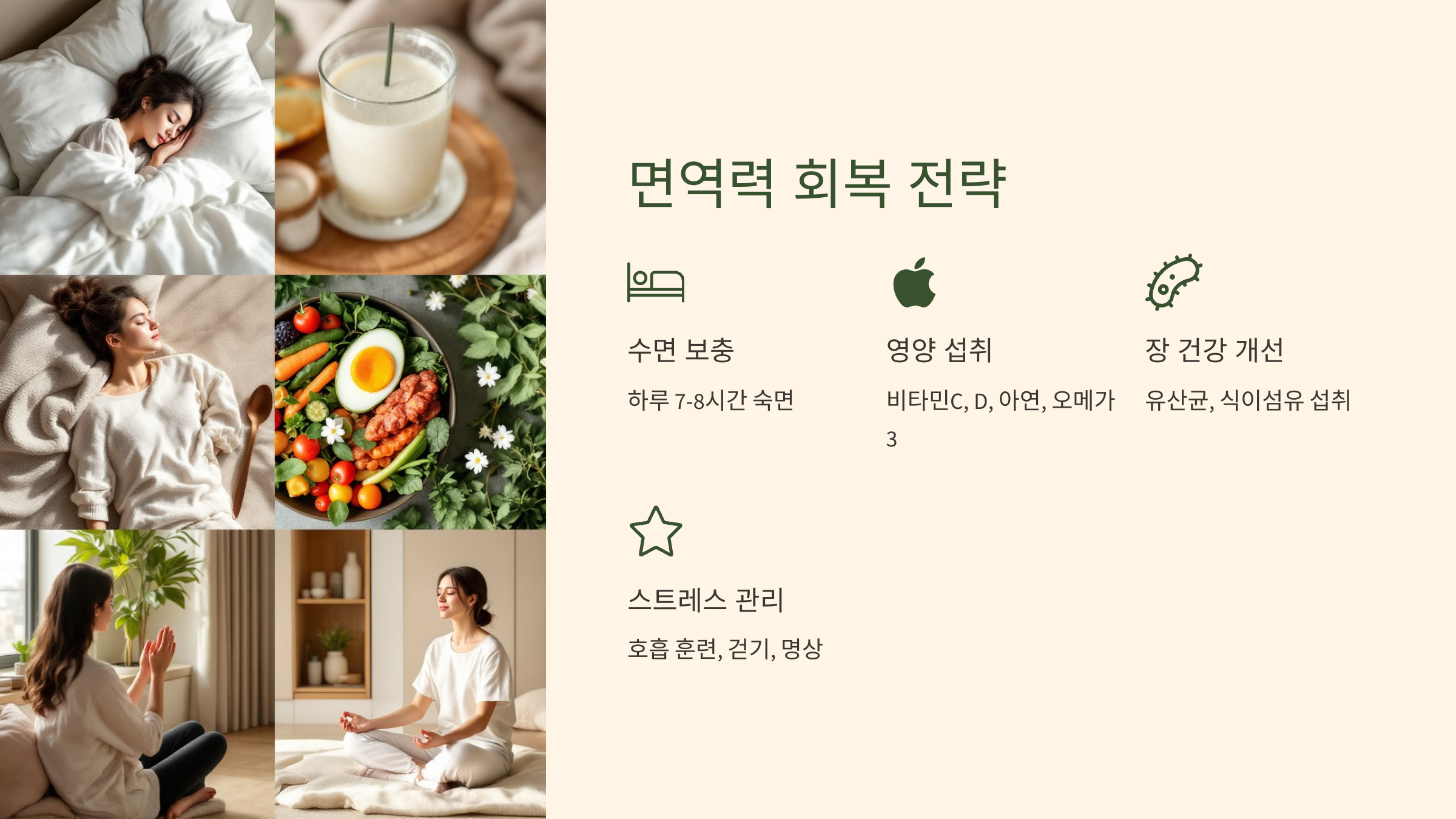 ✅ 이 글은 면역력 관리에 대한 전문적 자료를 기반으로 작성되었습니다. 의심 증상이 있거나 개선되지 않는 건강 문제가 있다면 의료 전문가의 상담을 권장합니다.