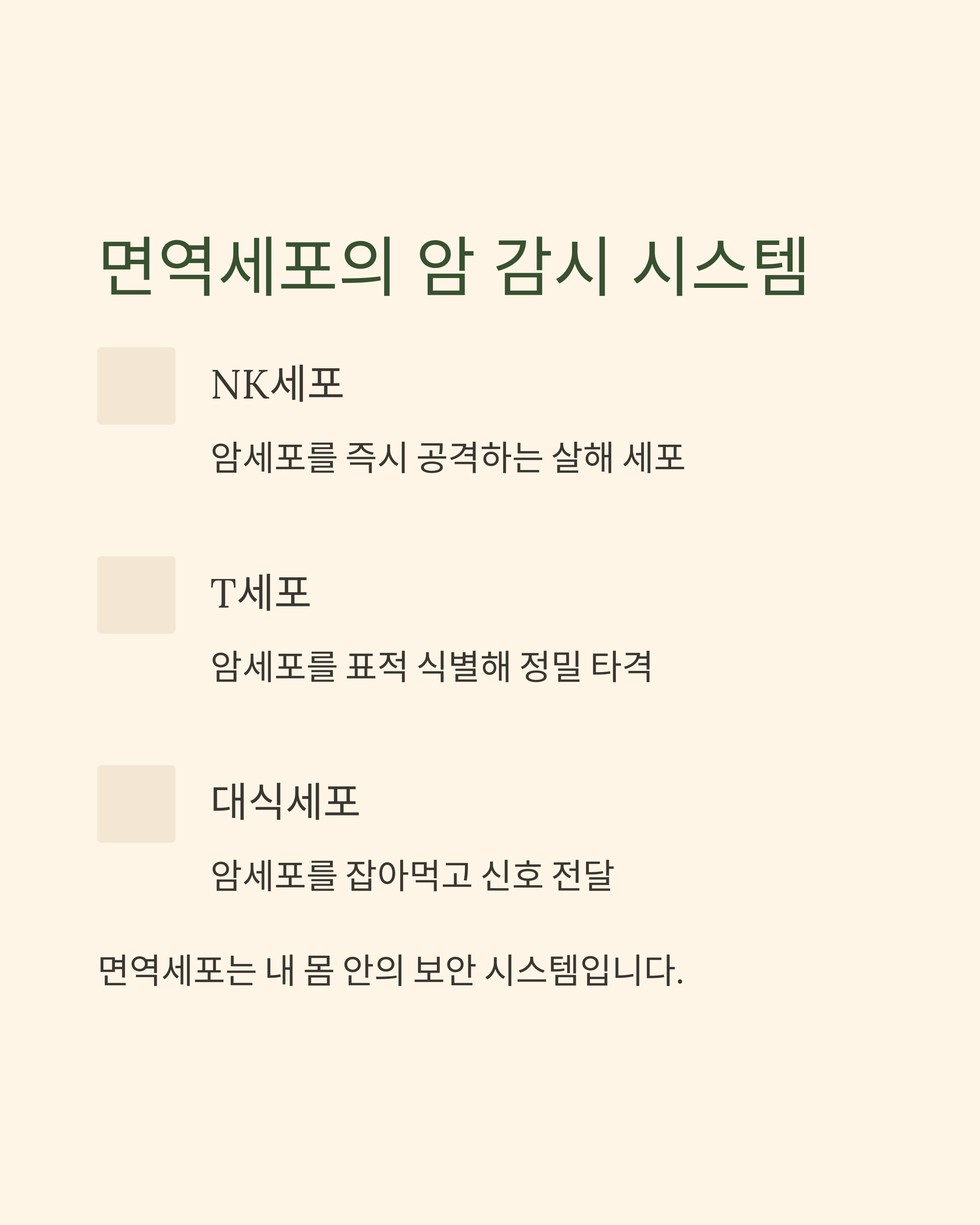 1️⃣ 면역세포, 암을 ‘감시’하고 ‘공격’하는 역할을 한다