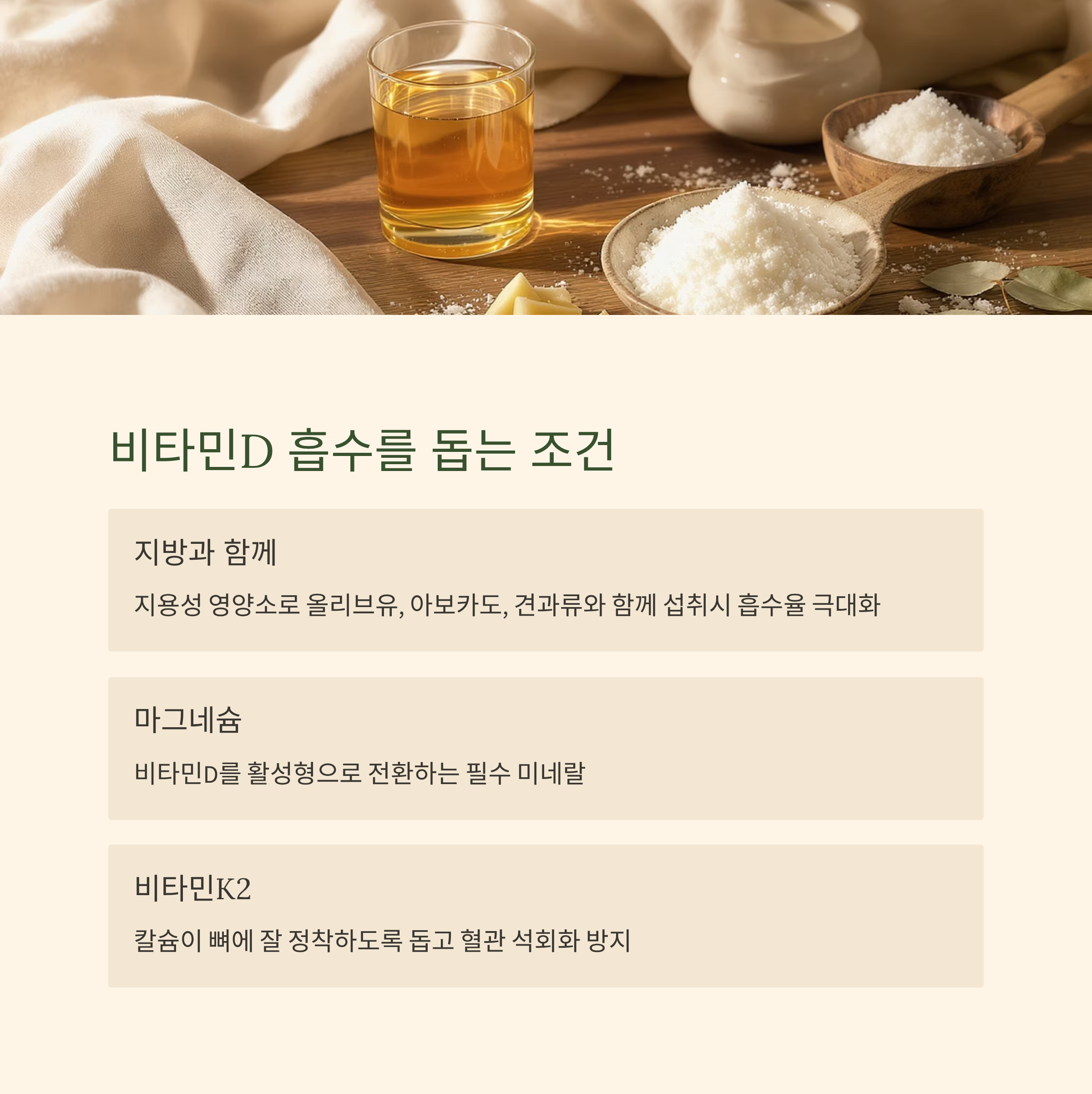 비타민 D는 단순히 입으로 넣는다고 끝나는 것이 아닙니다. 그 작고 소중한 영양소가 우리 몸에 스며들기까지는 수많은 생리적 조율과 조화가 필요합니다. 그것은 마치 자연의 복잡한 교향곡 속에서 각 악기가 완벽한 타이밍에 울려 퍼져야 하는 것과 같습니다.