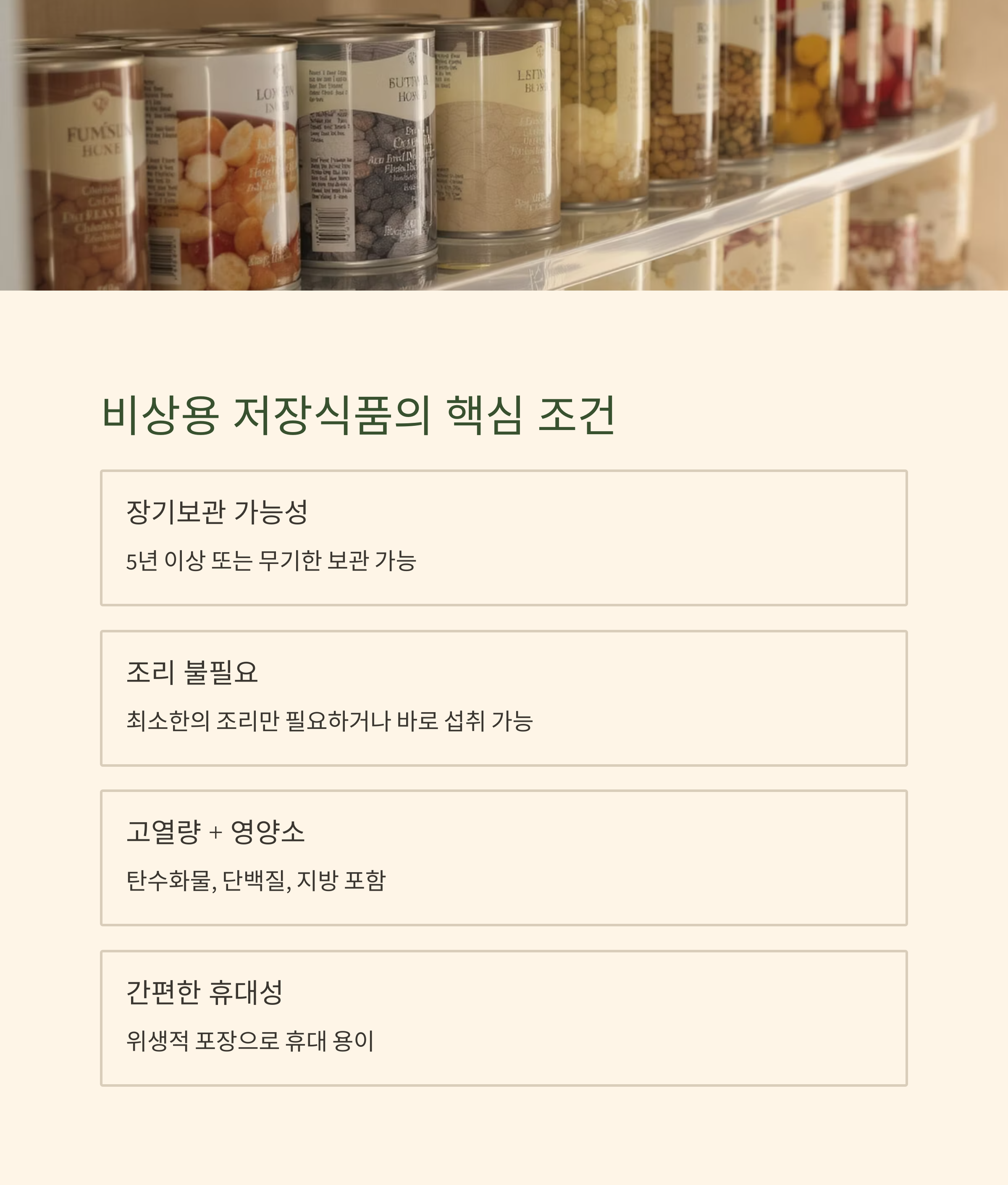 ✅ 비상용 저장식품의 핵심 조건 4가지