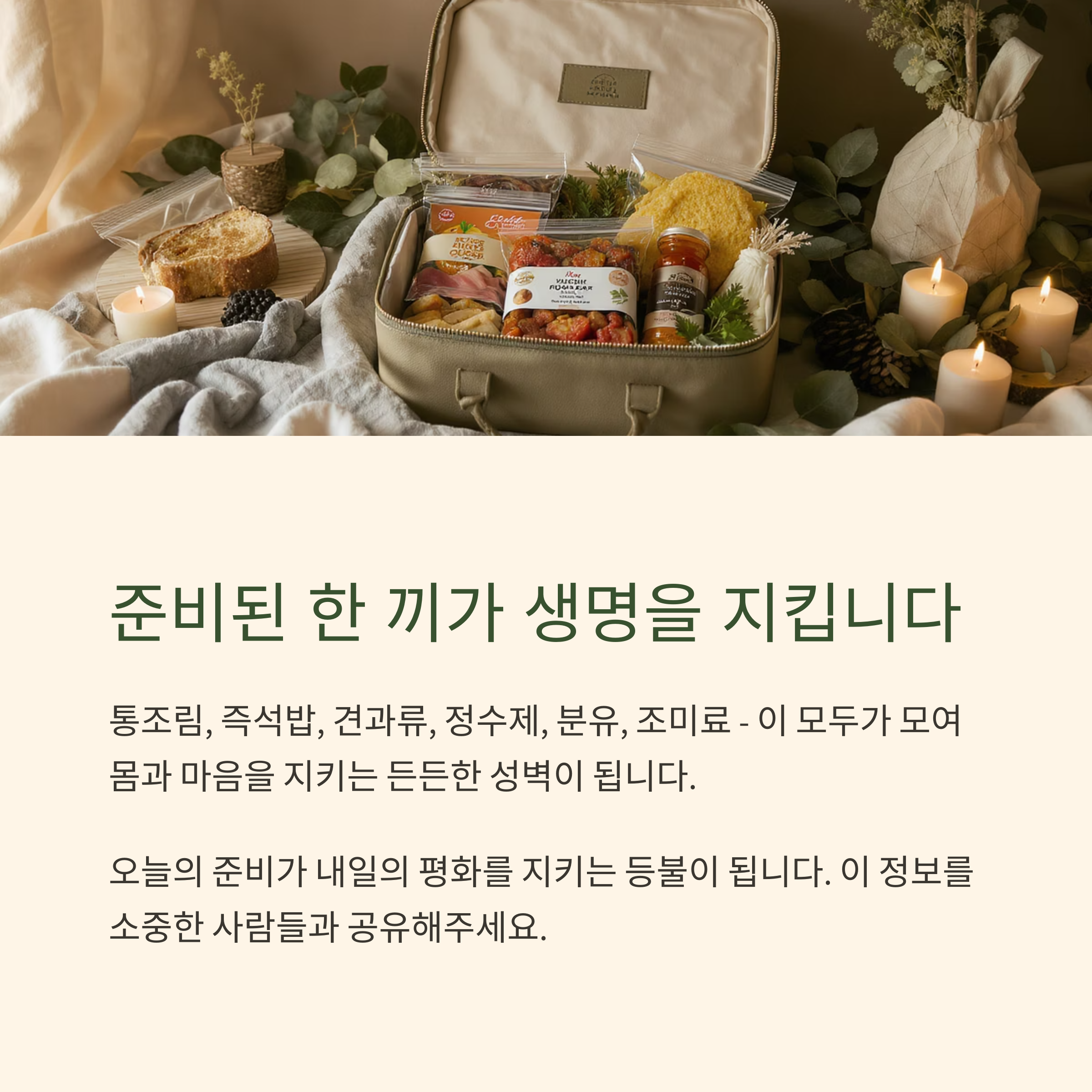 오늘 당신이 쌓는 이 한 줌의 준비가 내일의 평화를 품은 등불이 되어줄 것입니다.