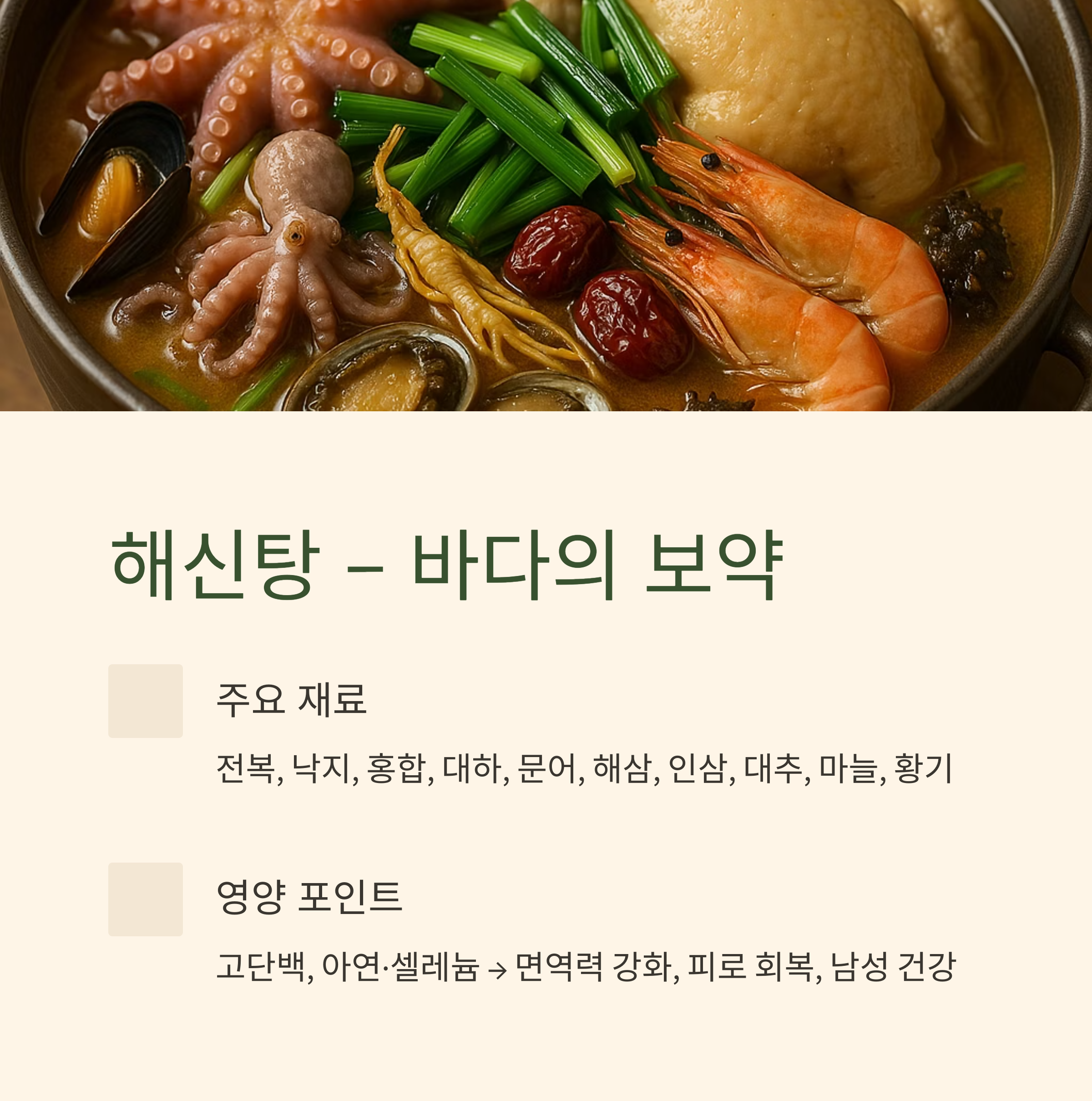 - 해신탕은 바다의 정수를 머금은 원기 회복 음식,