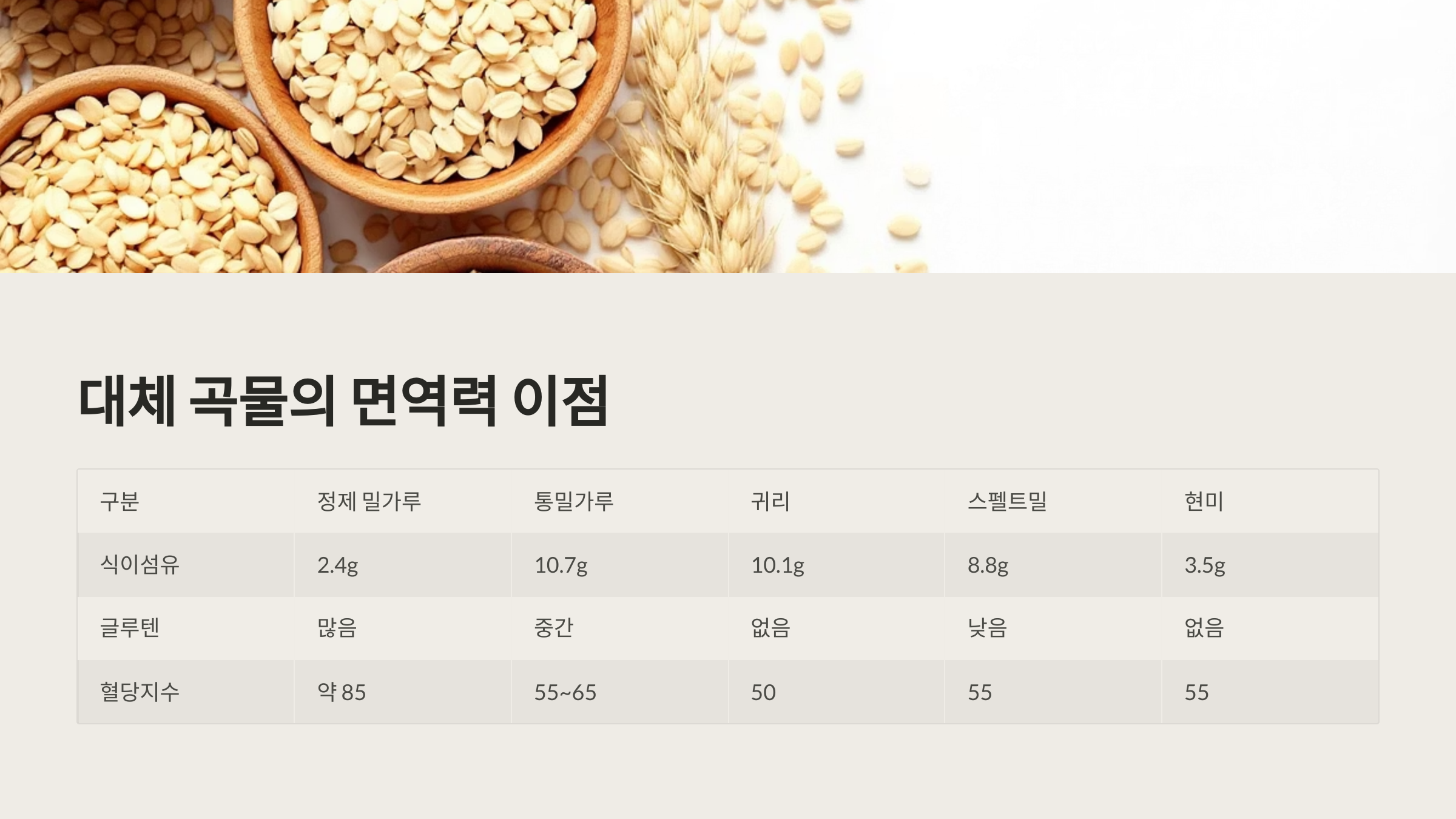 완전히 끊지 않아도, 먹는 방식과 대체 곡물만 바꿔도 면역력을 지킬 수 있습니다.
