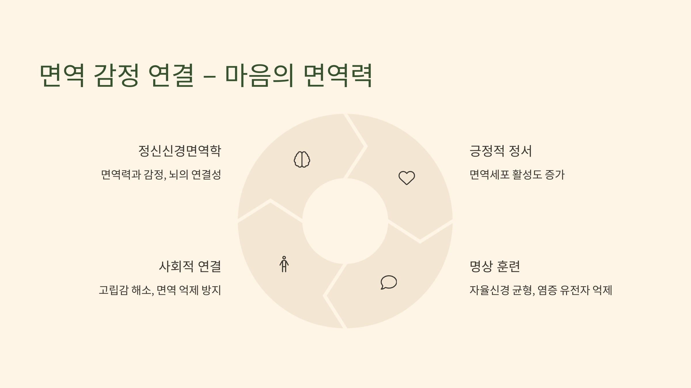 📌 감정 관리는 단순한 정서 치유를 넘어, 면역계의 작동에 실질적 영향을 주는 요소입니다.