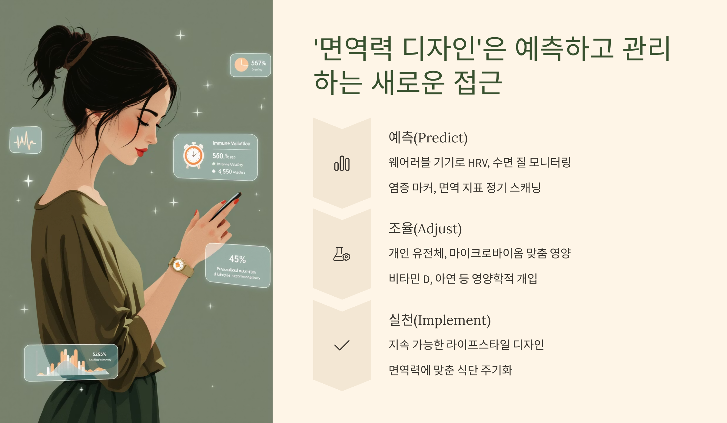 📌 면역력 디자인은 결국 디지털 기술 + 개인 생체데이터 + 생활습관 개입이 결합된 ‘프리시전 헬스케어(Precision Healthcare)’의 일환입니다.