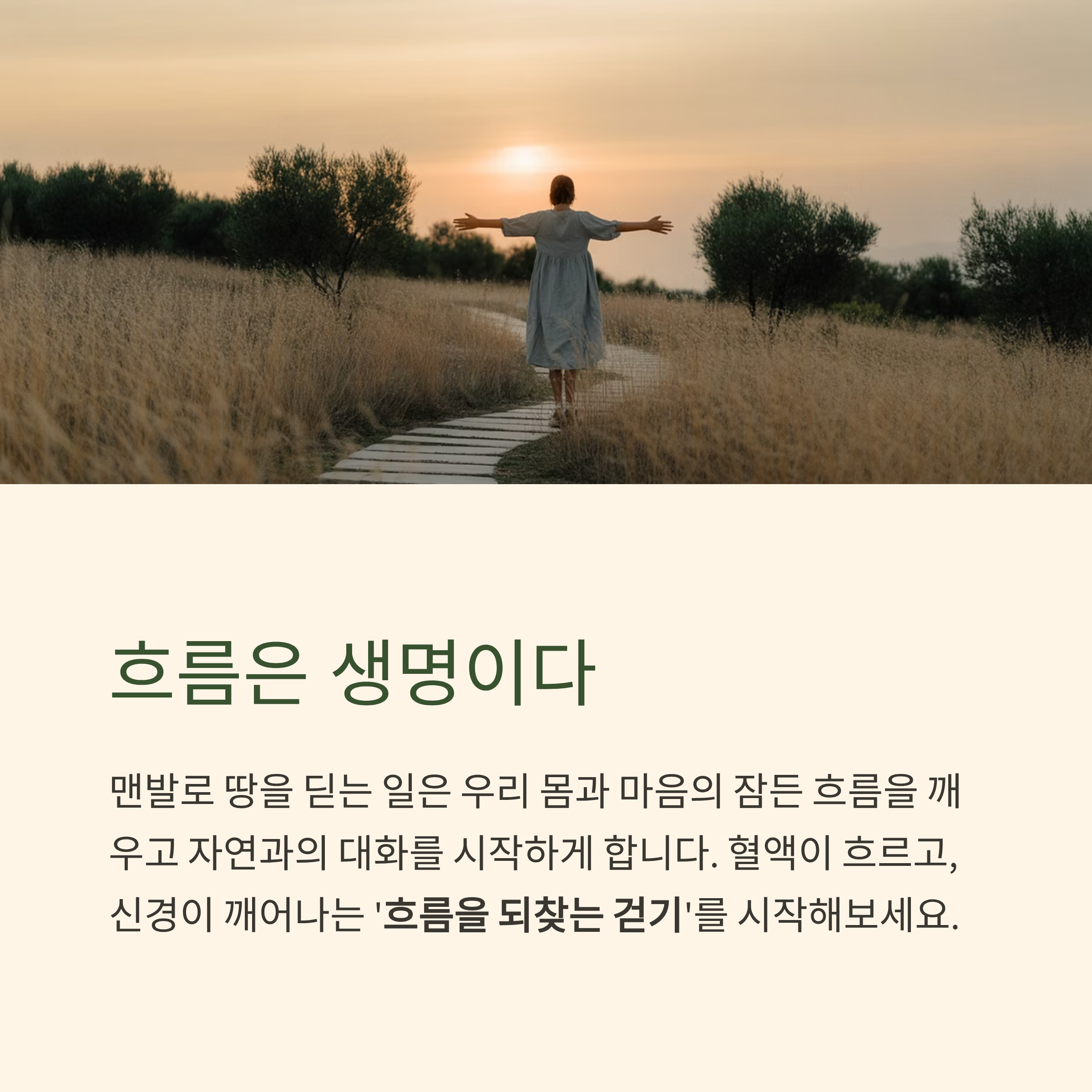 맨발로 땅을 딛는 일은 단순한 행동 이상의 의미를 품고 있습니다.