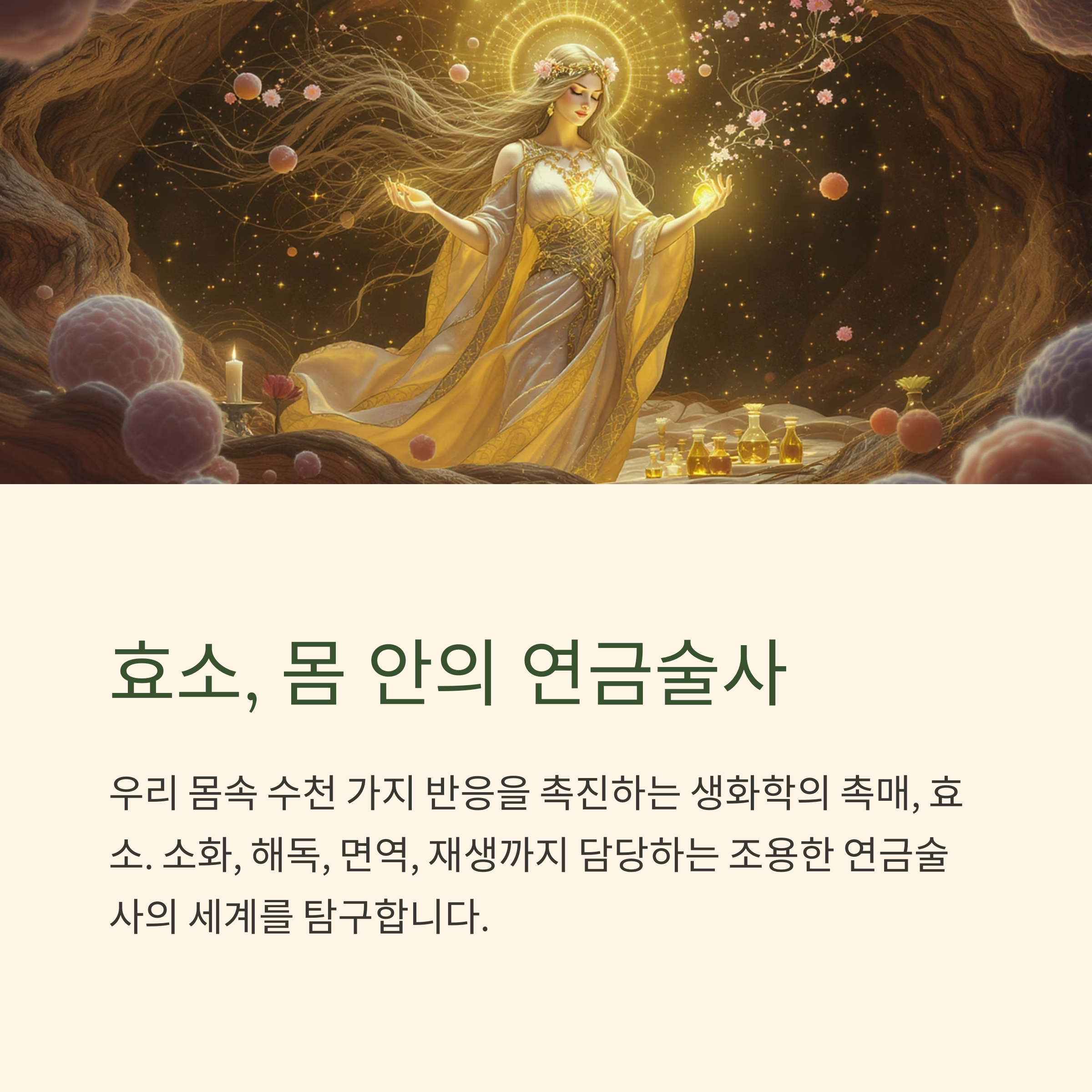 효소는 우리 몸속에서 생화학 반응을 촉진하는 ‘생명의 연금술사’입니다.