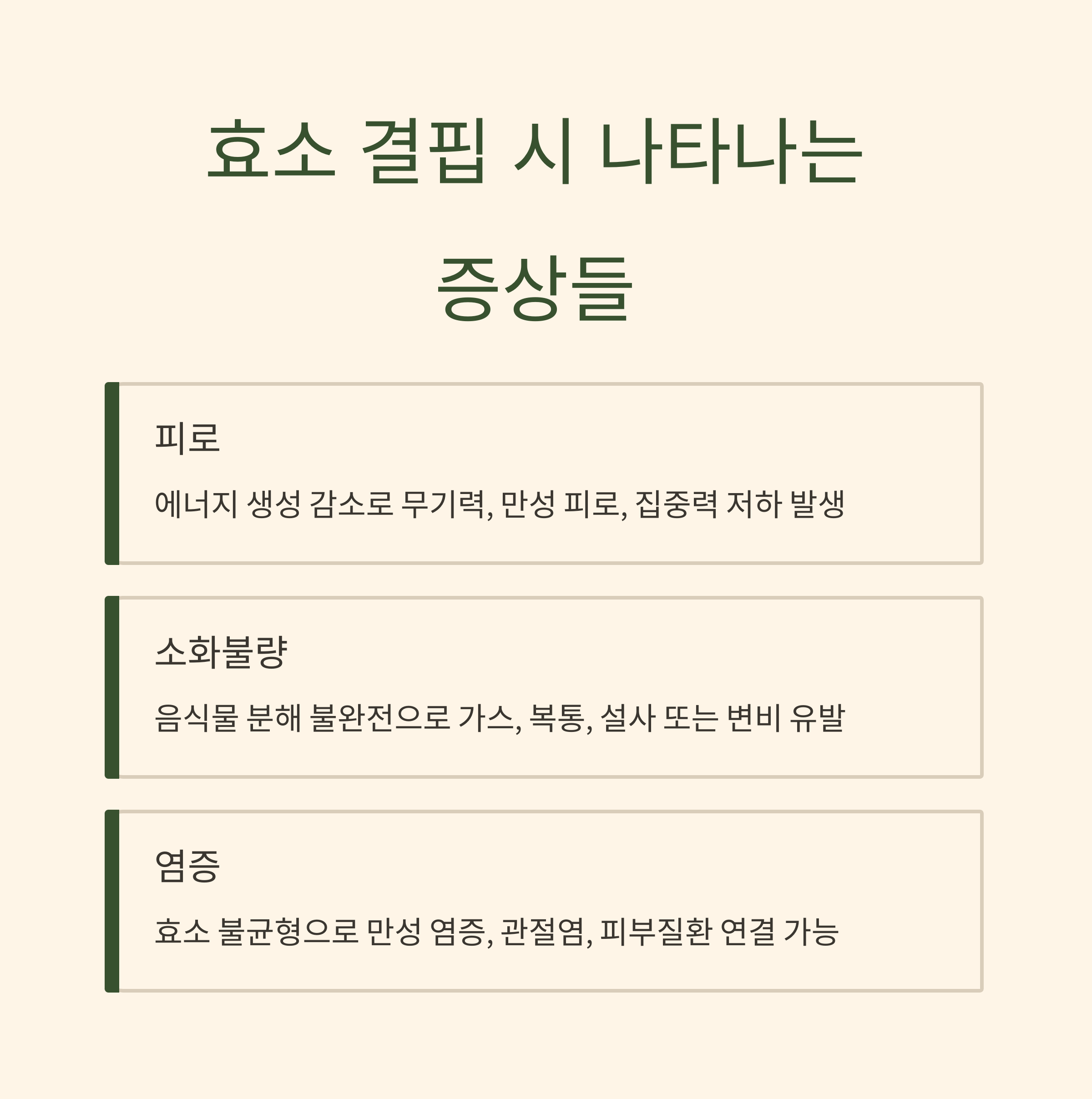 하지만 효소가 부족하면 피로와 소화불량, 염증 같은 신호가 몸에 나타나