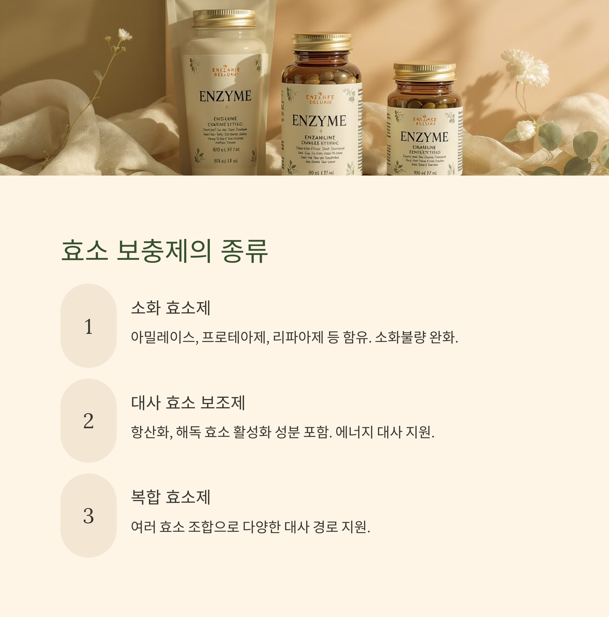 효소 종류와 활성도, 제조 공정에 따라 품질과 효과가 크게 다릅니다.