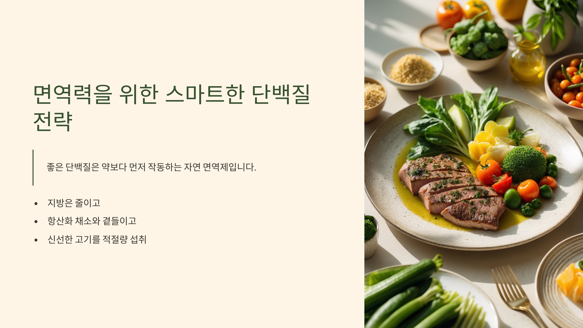 건강한 고기 식단, 그것이 오늘도 내 몸을 건강하게 지켜주는 가장 현실적인 면역 투자입니다.