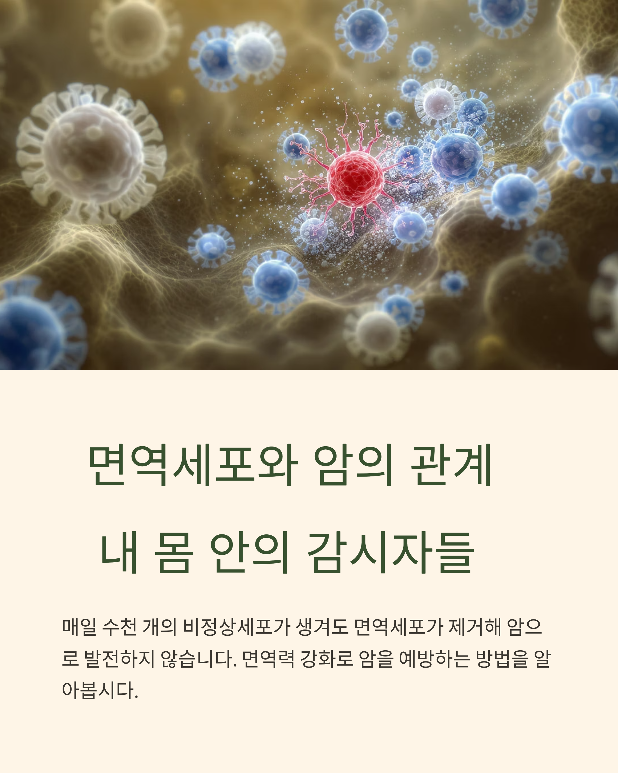 1️⃣ 면역세포, 암을 ‘감시’하고 ‘공격’하는 역할을 한다