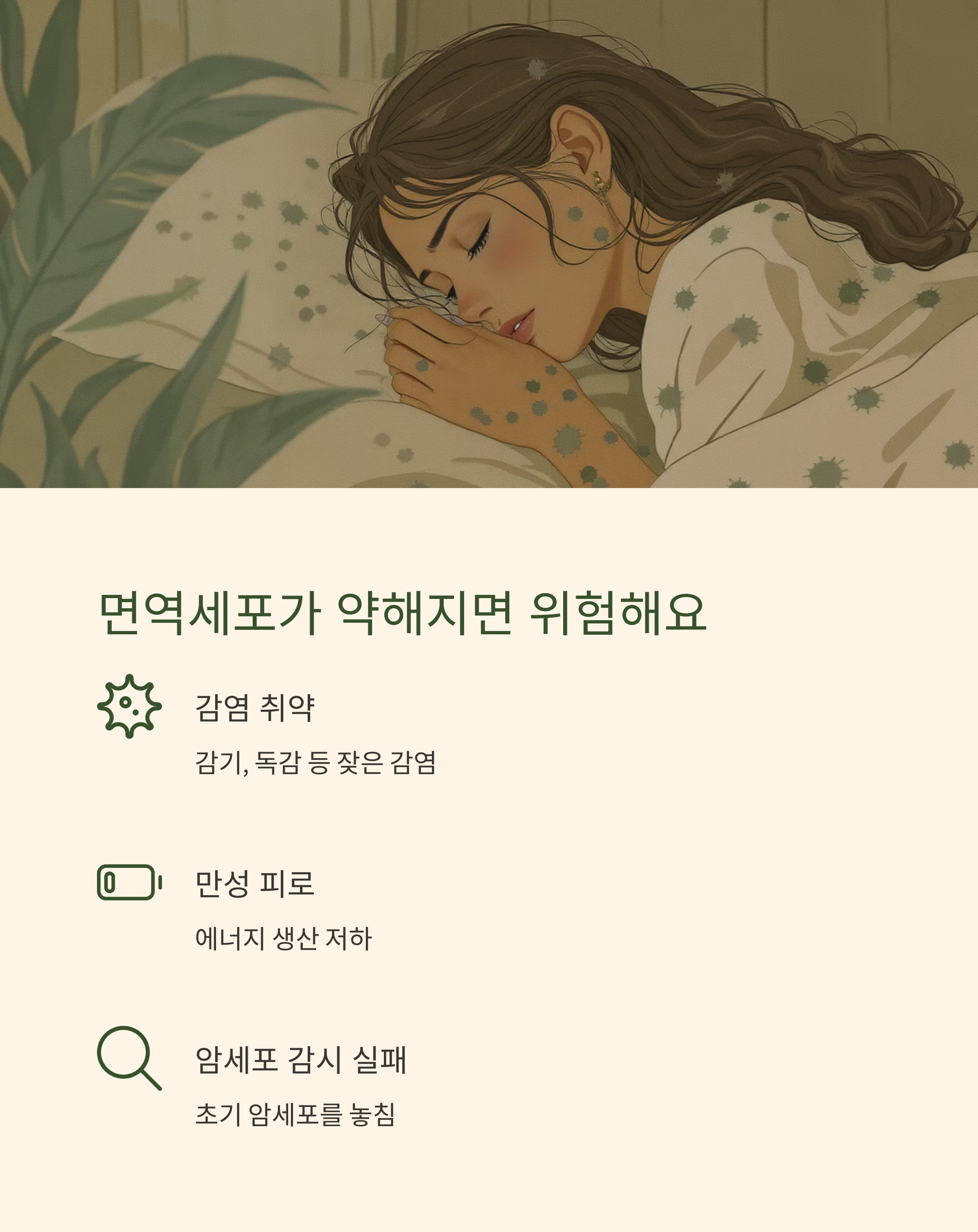 | 🤒 감염 취약 | 감기, 독감, 대상포진 등 잦은 감염 |