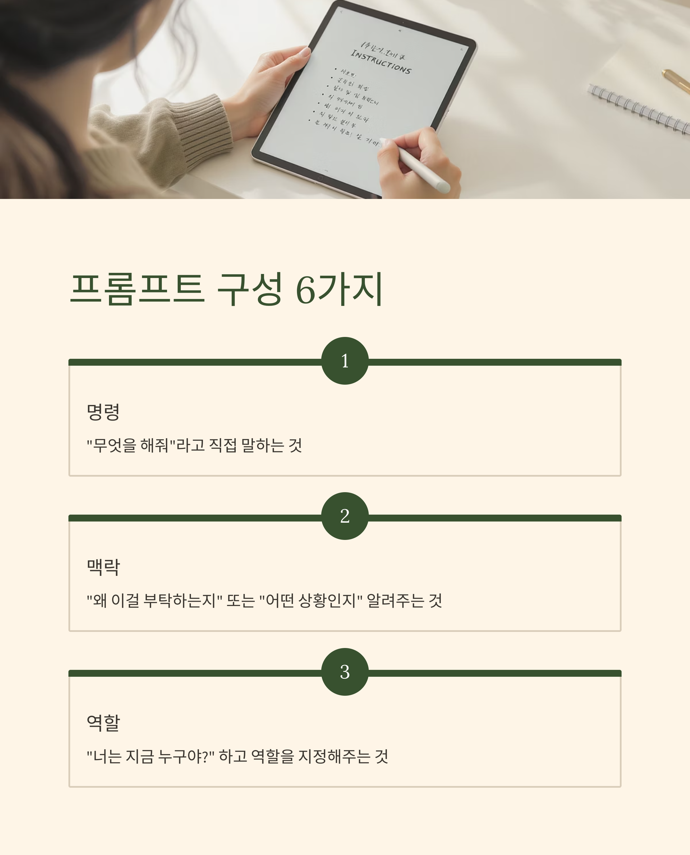| 3. 역할 | AI의 역할 정하기 | “국어 선생님처럼 말해줘” |
