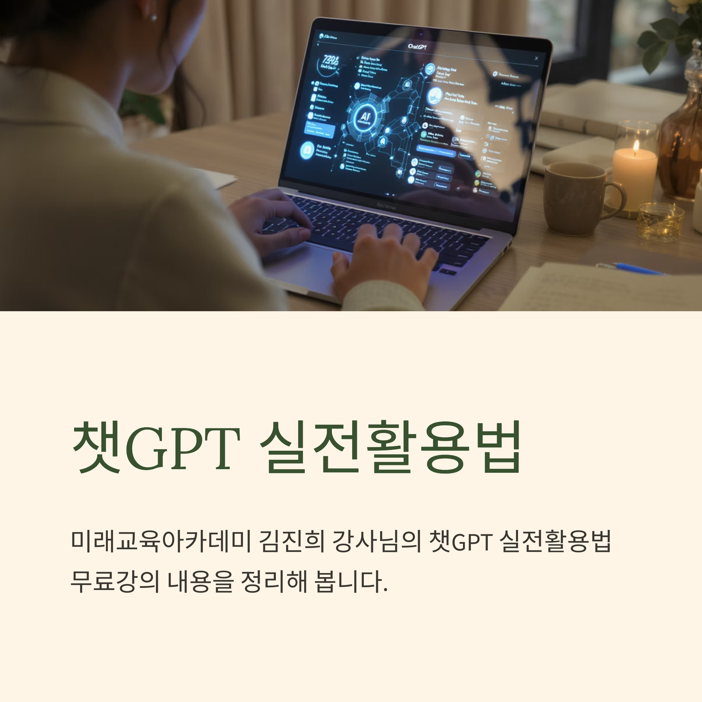 챗GPT 실전활용법 미래교육아카데미 김진희 강사님의 챗gpt 실전활용법 무료강의가 있어 다녀왔습니다.
