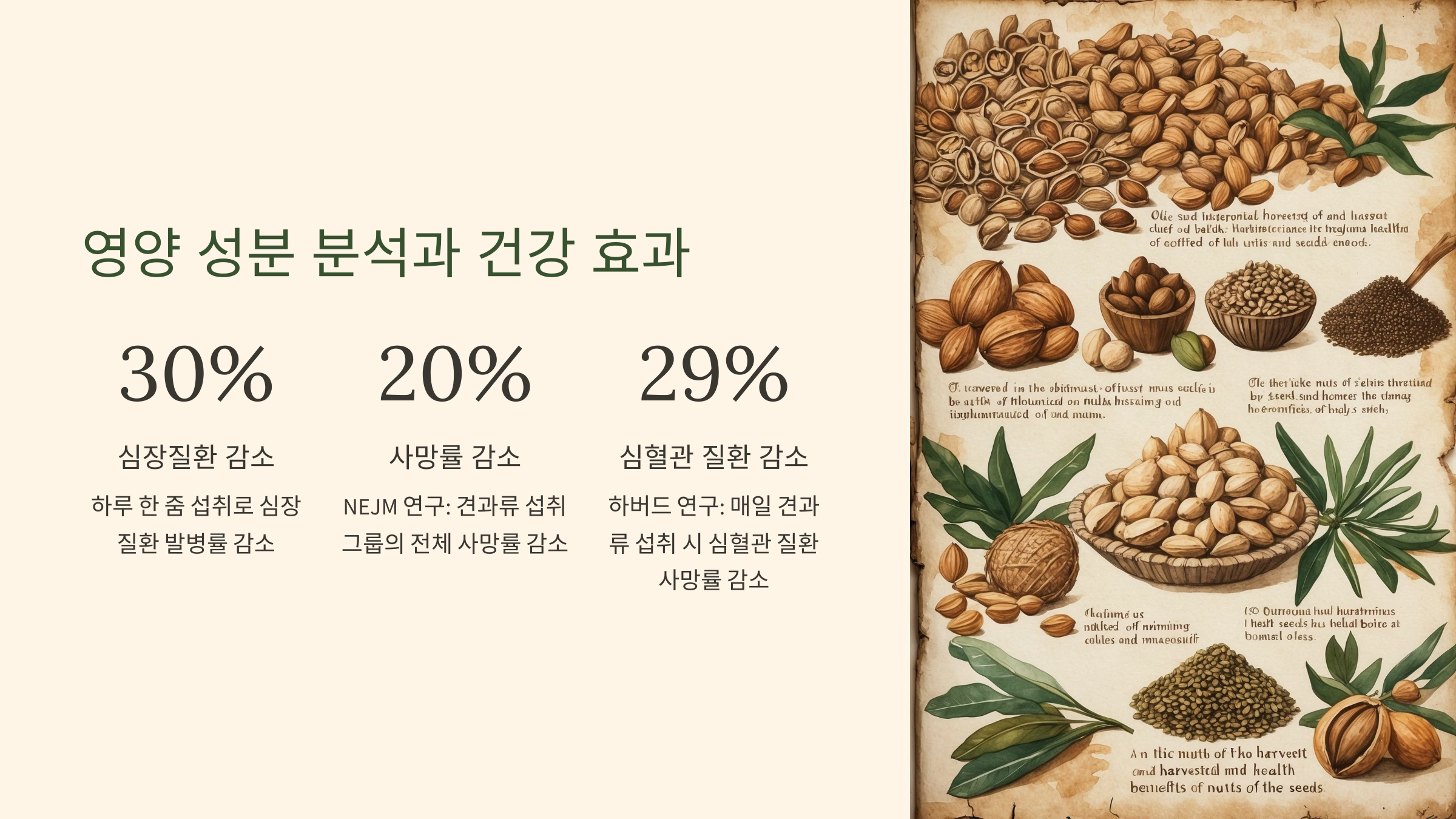 이 글을 통해 작은 한 줌의 견과가 어떻게 당신의 몸과 마음에 활력을 불어넣는지 느끼셨길 바랍니다.