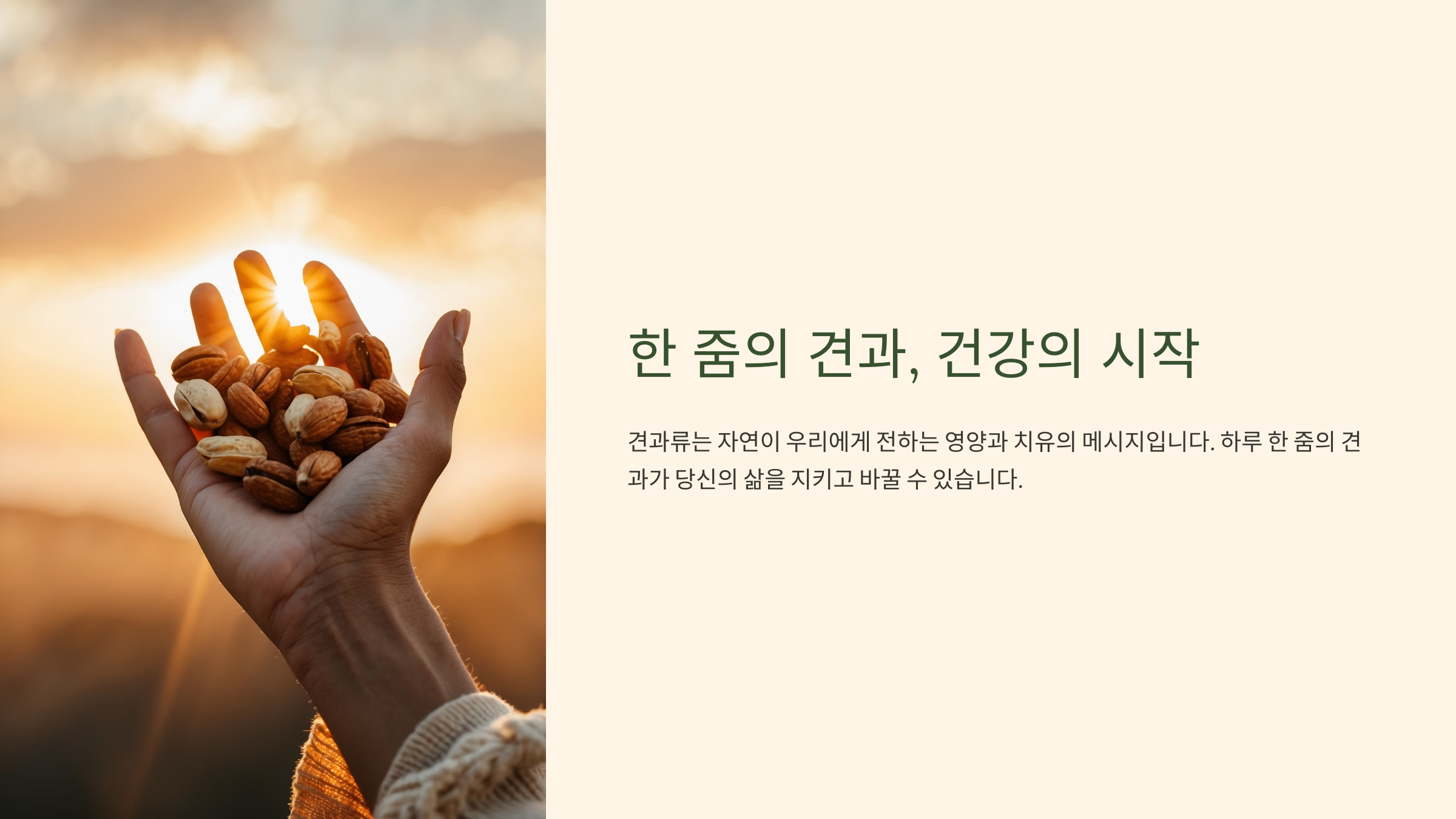 견과류는 단순한 먹거리가 아닌, 자연이 우리에게 전하는 영양과 치유의 메시지입니다.
